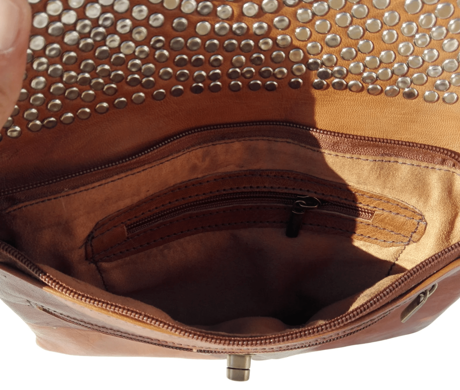 Elegante Lederhandtasche, Hippie Style mit Nieten verziert
