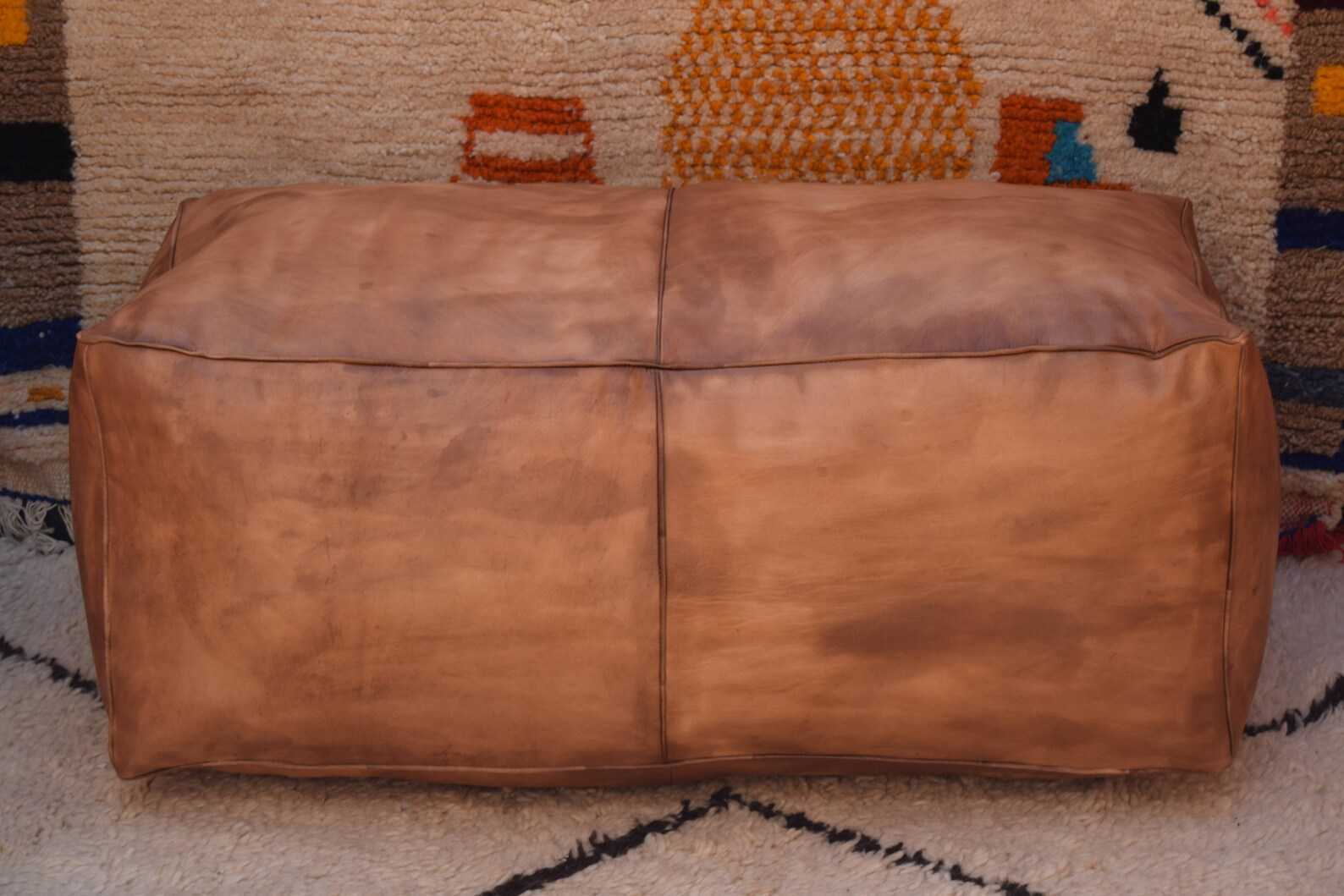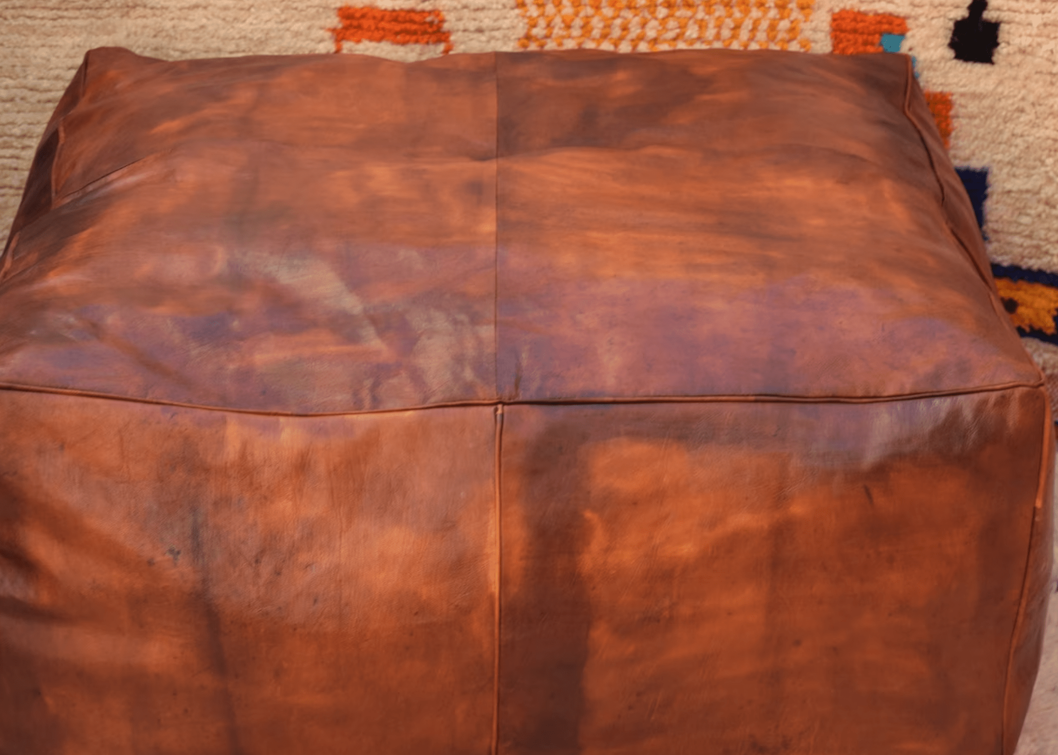 Eleganter Sitzhocker Ottomane aus echtem Leder farbe Cognac