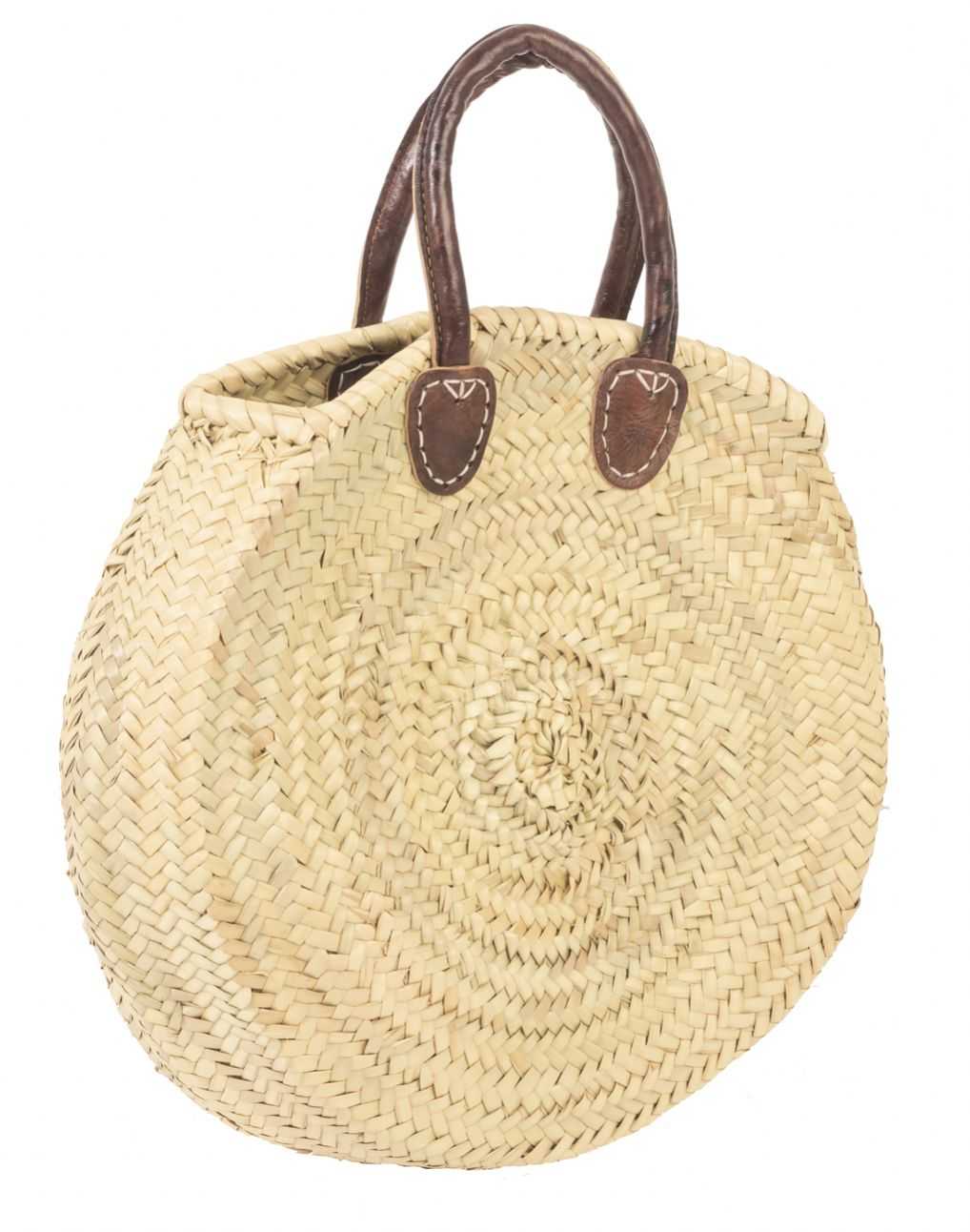 Handgeflochtene Große Rundtasche mit stabilen braunen Leder-Top-Griffen, vielseitig verwendbar zum Einkaufen, für Freizeit und Strand