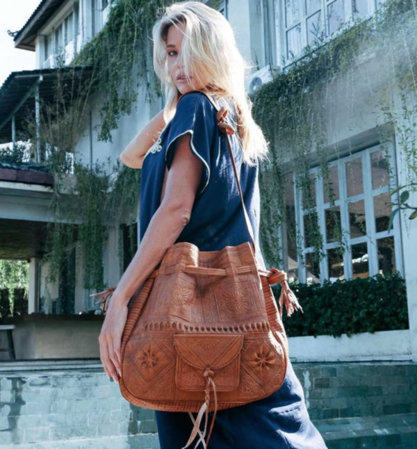 Lässige Damen Lederhandtasche / Wildlederbeutel mit großem Hauptfach mit viel Platz in Cognac