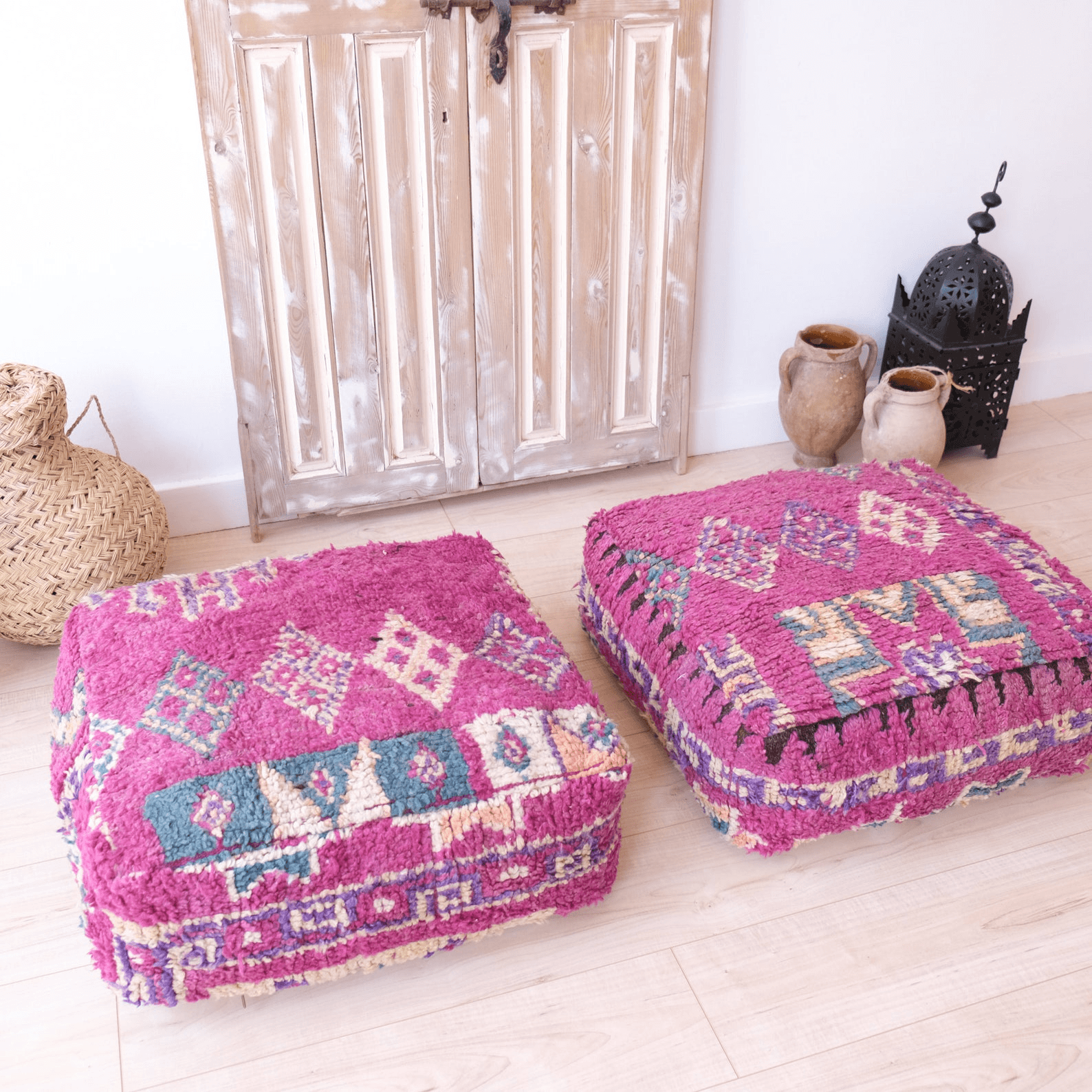 Schöner marokkanischer Berber Pouf in Lila KILIM BERBER BODENKISSEN