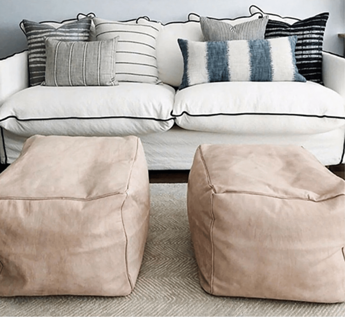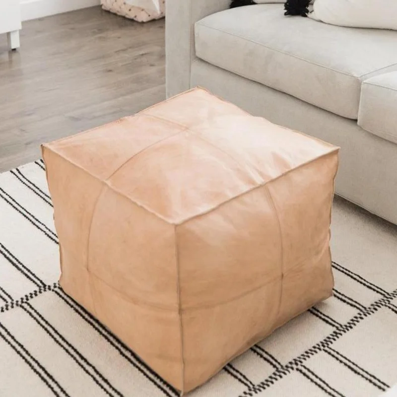 Wunderschöner Quadratischer Pouf marokkanische Lederhocker Ottomane aus echtem Leder in Creme